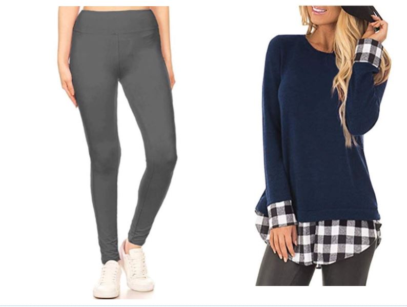 For a cool casual look, add this Long Sleeve Plaid Flannel Tunic Shirt. $9.99 – $21.99 Amazon.