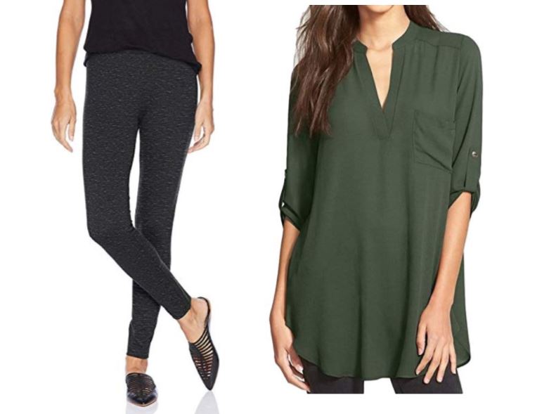These get great ratings from Amazon Customers. Figure-flattering double-knit ponte fabric ensures these versatile pants hold their shape for the all-day comfort of leggings with the look of dress pants. And you can’t beat the price of $20. Pair them with this Roll Tab Sleeve Tunic, perfect length for leggings. $17.99 Amazon.