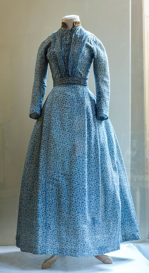 Two-piece printed delaine dress (of cotton and wool), ca. 1850, worn by Charlotte Brontë. Brontë Parsonage Museum. Photography by Gareth Gardner photography + journalism.