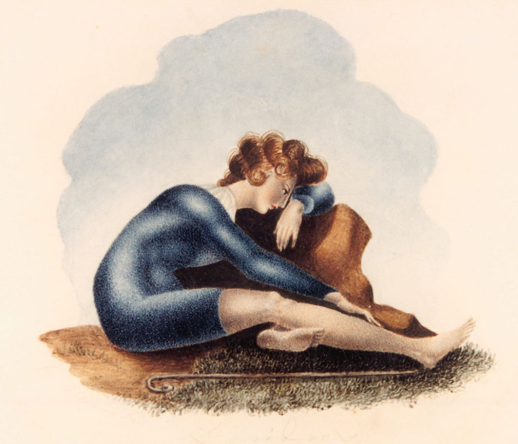 Charlotte Brontë (1816–1855), Lycidas, watercolor drawing, March 4, 1835, copied from a print after painting by Henry Fuseli. Brontë Parsonage Museum.