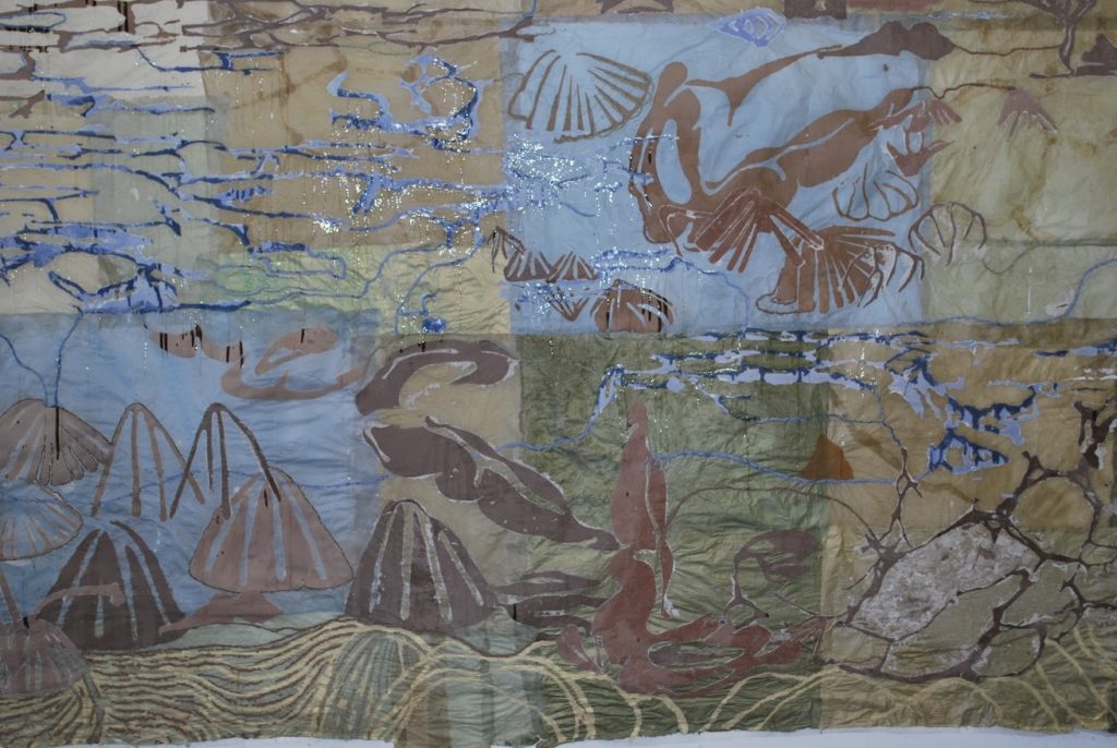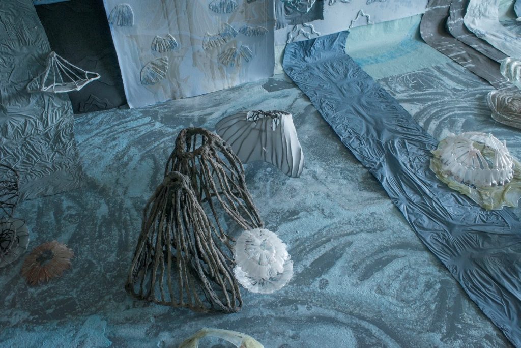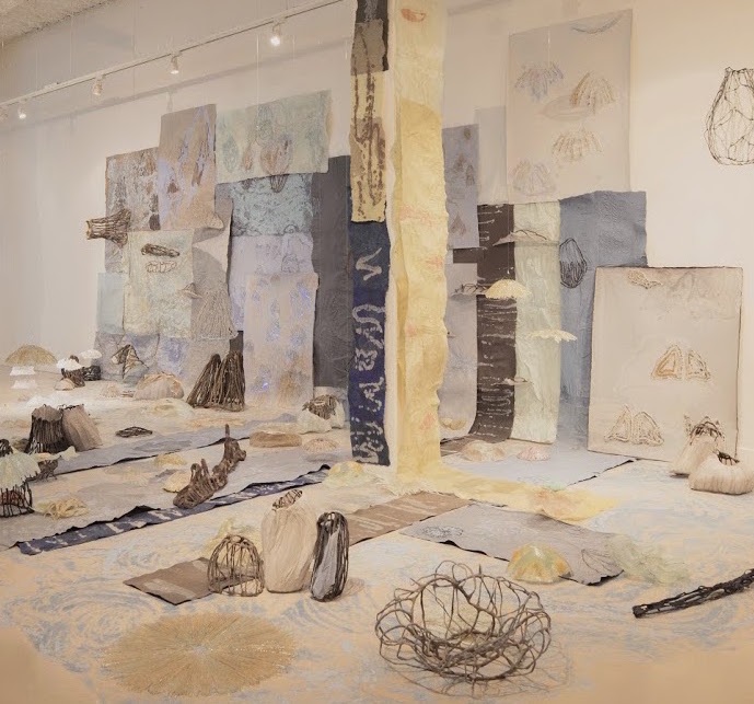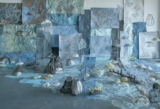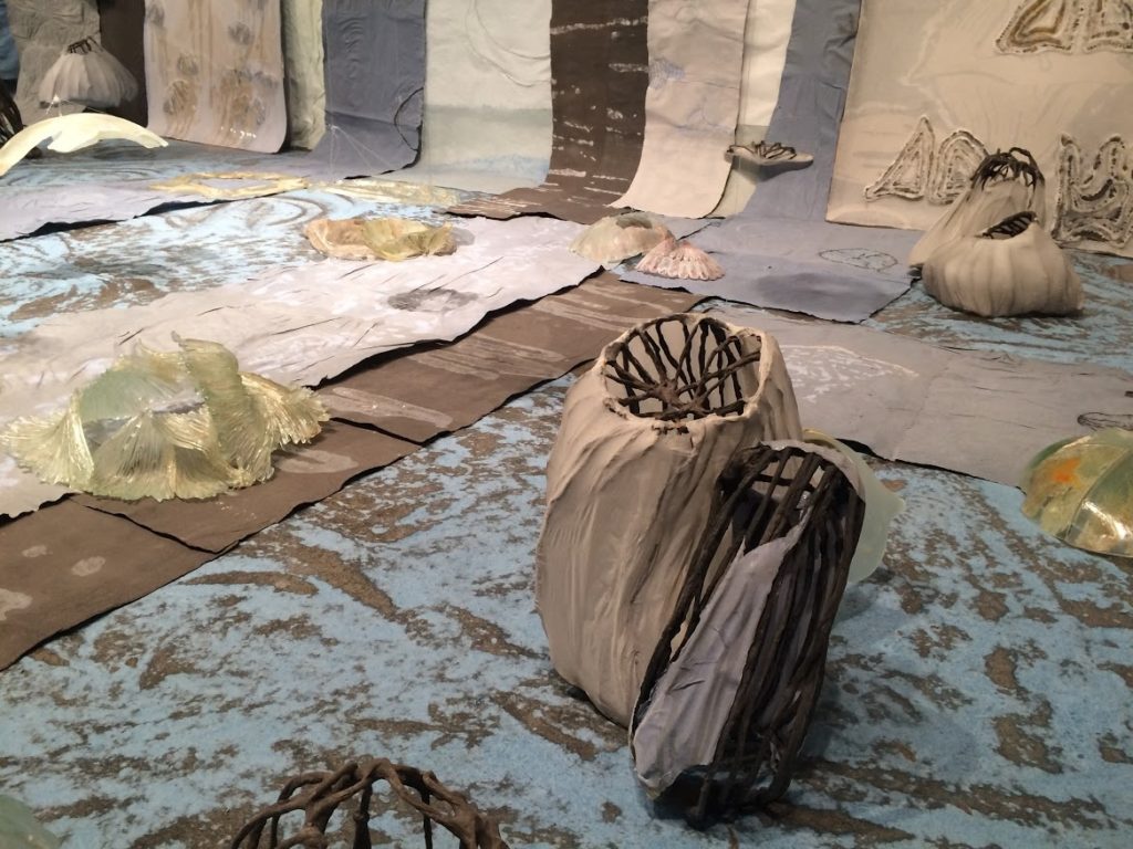 “Marsh Drawing”, 2016, 15 x 9 feet, handmade paper, rubber, resin
