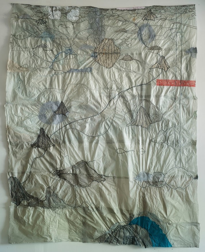 “Hackensack Dreaming Drawing”, 2015, handmade paper, rubber and resin, 112″ x 90”