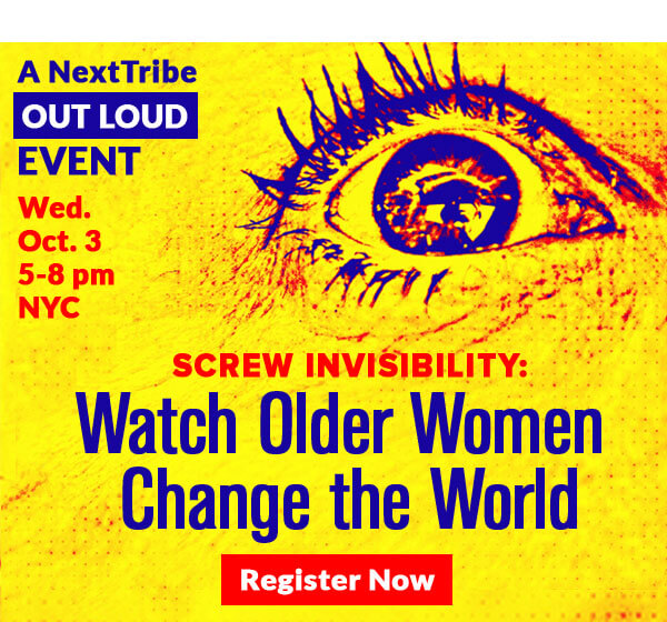 Our friends at Next Tribe are singing our song. Join them at their first event in New York City on how grownup women are re-shaping our culture and expressing their rightful power. Speakers include Judy Collins (via video) and in person Kathleen Kennedy Townsend and aging activist Ashton Applewhite among others. You’ll enjoy wine, a signature cocktail and networking. Hope to see you there. Sign up before 9/26 and get tickets for $25.