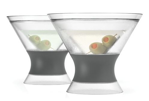 Just pop the Martini FREEZE in the freezer for 2 hours, pour your favorite martini and enjoy! The proprietary cooling gel freezes solid inside the double-walled chamber, providing thermal insulation that keeps your drink cold for longer. $14.99 for 2 glasses.