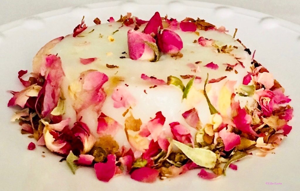 *I use Bakers Angel Flake; Garnish- Edible Rosebuds, available from http://Flowerpottea.com