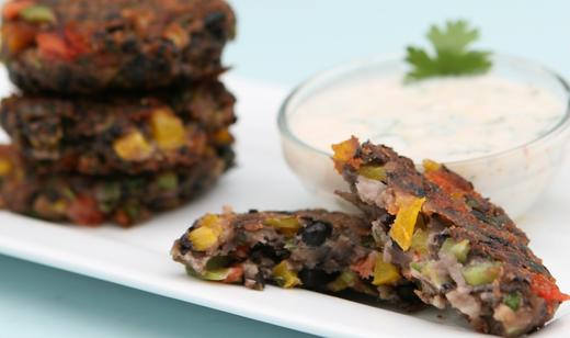 Black Bean Cakes with Florida Tomatoes and Spicy Yogurt Sauce