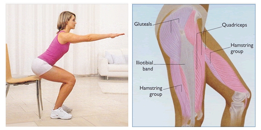 1) The Squat reinforces the hip joint, works the large muscles of the legs and is the most functional of all exercises. By working the muscles of the buttocks, thighs and lower legs, as well as using the abdominal and back muscles to stabilize the torso, the squat is the closest we can get to a full-body exercise. It is the same movement that we need to rise from a seated position or to lower ourselves down to the floor, so it is a very functional exercise that helps to keep us independent as we advance in years.