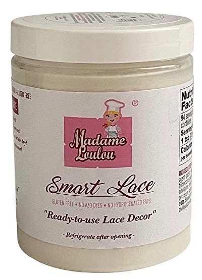 “Ready-to-use right out of the container! Just apply one coat to your favorite silicone lace decor mat, and dry in the oven or the open air. Works with ANY brand of silicone lace mat! Use a straight edge to spread this paste into even the most intricate patterns, and return the excess to the container so it’s ready for the next project. Fast drying! Set your Smart Lace in the oven in about 10 minutes, or with a dehydrator in about 30 minutes, Of course it can also be set the traditional way, in the open air. Real convenience – make your lace embellishments in advance then store them in an airtight environment and they can be used at a later date, still flexible and pliable like new!”