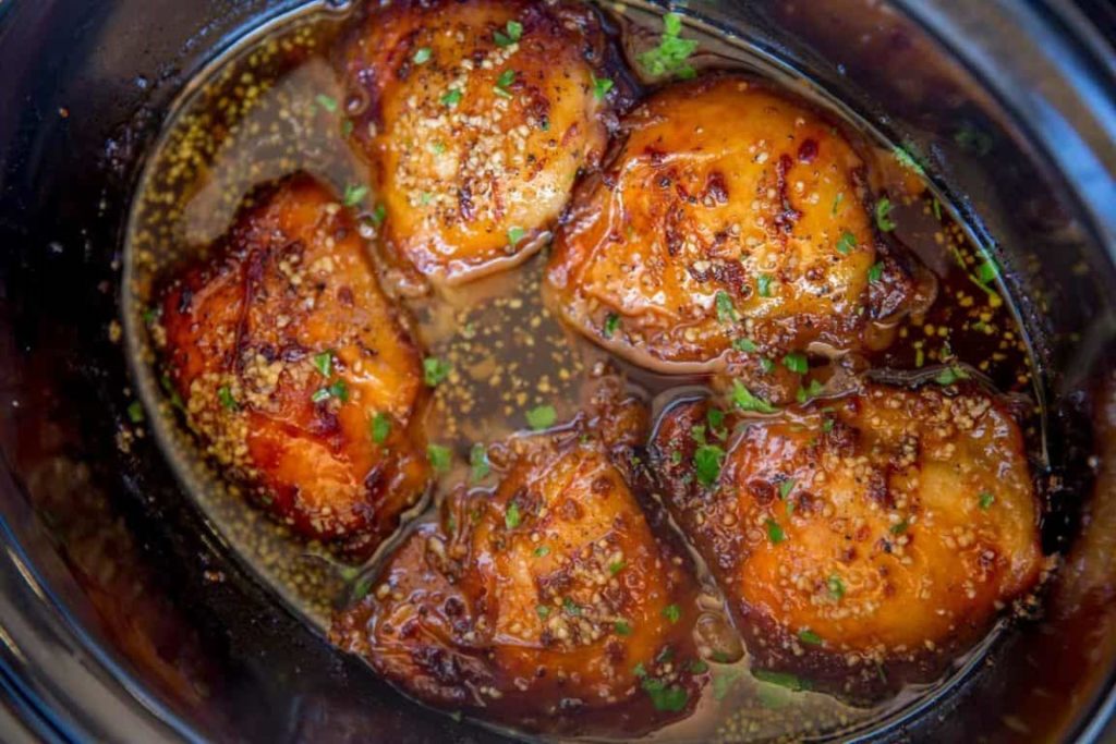 5 chicken thighs pre-browned in pan-this can be made with boneless skinless without pre-browning