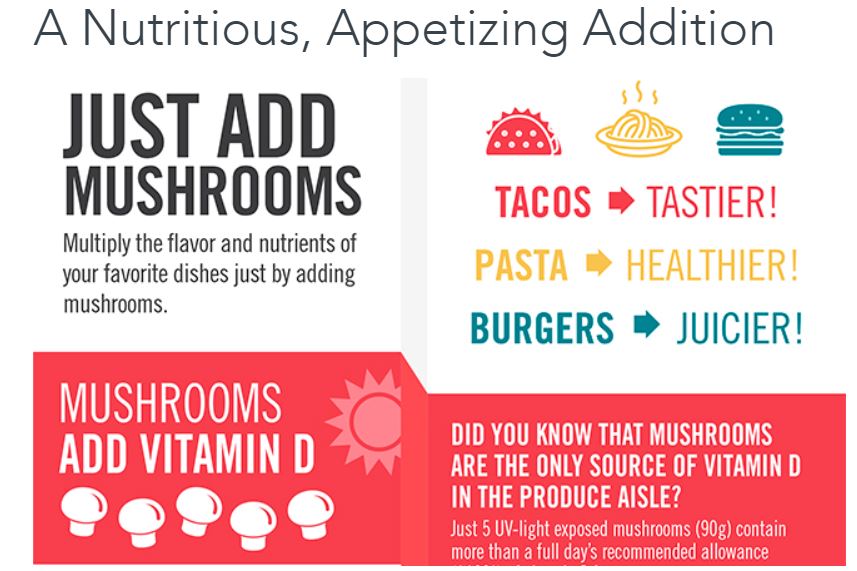 Accoring to Family Features, one of the simplest ways to make meals tastier and more nutritious: just add mushrooms. You can multiply the flavor and nutrients like vitamin D and selenium by adding them to tacos, pasta, burgers and more. And check out these stats from the Mushroom Council.