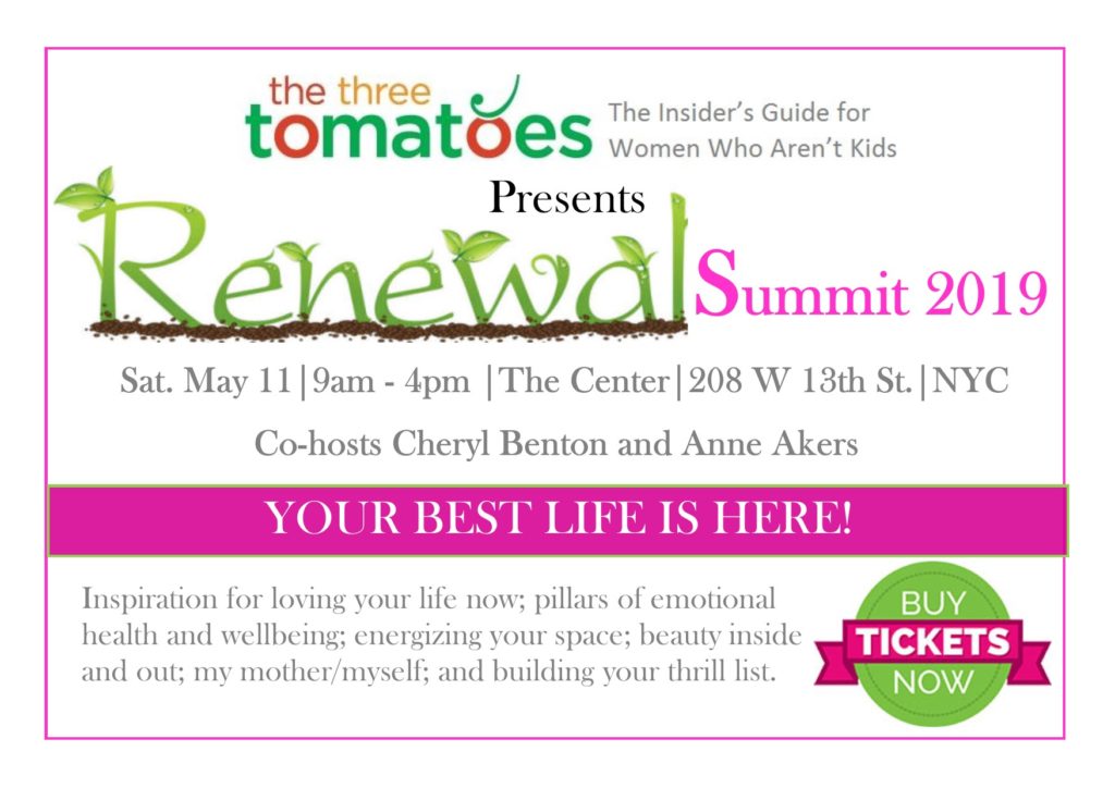 Are you ready to be inspired to live your best life right now? Join us the Renewal Summit in NYC on May 11th. You’ll hear great speakers like Lisa Oz (wife of Dr. Oz), 9-time Emmy winner Jane Hanson, award winning journalist and psychotherapist Dr. Robi Ludwig (our keynote) and more! Buy two tickets and get $15 off with code FRIEND.