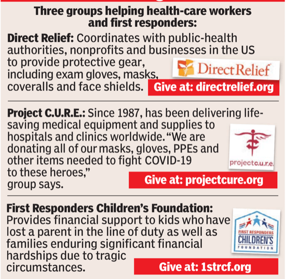 If you’re feeling a little helpless right now, here are three ways you can help through these non-profits, highly rated by Charity Navigator. Direct Relief is coordinating providing protective gear. Project Cure is donating all of their masks, gloves, and PPEs. First Responders’ Children’s Foundations provides financial support to kids who have lost a parent who is a first responder.