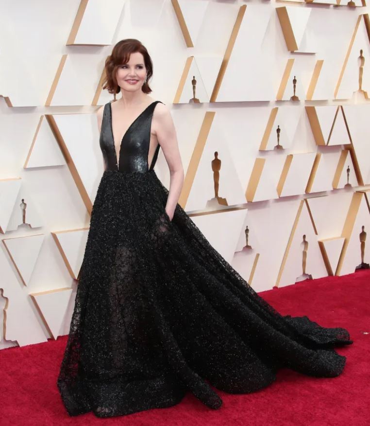 Paul Julch. Geena Davis – proved that great style endures. She was commanding in an allover black sequined ballgown with a deep plunging neckline. Stunning, dramatic and best in black!