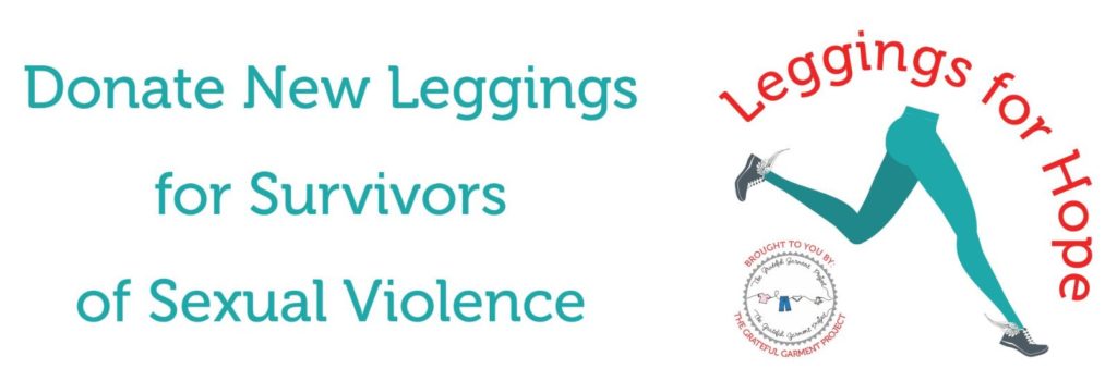 I personally experienced an afternoon filling backpacks with donated sweatpants, t-shirts, notepads, toiletries and more, for the police to give to victims. Two women are hosting an evening of conversation, friendship, drinks and desserts to inform attendees about The Grateful Garment Project. In 2019, TGGP is collecting 10,000 pairs of NEW leggings with their Leggings For Hope Drive. Leggings are one of the most requested but least donated items of clothing. You can bring a NEW pair of leggings and/or simply make a financial donation that will be used to purchase new leggings (financial contributions allow TGGP to purchase the leggings in bulk at wholesale prices, thereby making each dollar go further).