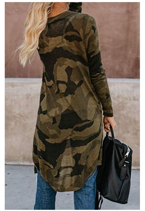 Front Button-Down Knitted Cardigan with Pockets is very light weight, and the camo design make sit perfect for fall. Amazon $26.99.