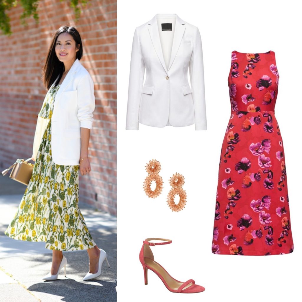You may not think that a white blazer would be your first choice to wear to a summer wedding, but ponder this: Do you want to buy a cardigan or shrug that only matches one dress and otherwise sits in your closet? Or do you want to grab something super versatile that will protect you from the chill when an outdoor wedding goes into the evening hours? I always vote for versatile – how about you?