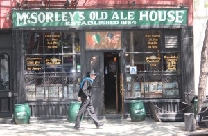 I’ll bet you are expecting me to talk about Irish bars – I won’t disappoint, but before we start our traipse uptown let’s make a b-line for the oldest Irish bar in NYC – McSorley’s Old Ale House, generally known as ‘McSorley’s’. It is on East 7th Street in the East Village. Two of McSorley’s mottos are “Be Good or Be Gone,” and “We were here before you were born.”