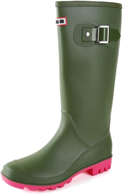 How cute are these? Waterproof anti-slip knee high rainboots with comfy insoles, lightweight mid heel lug sole. Amazon $25.49.