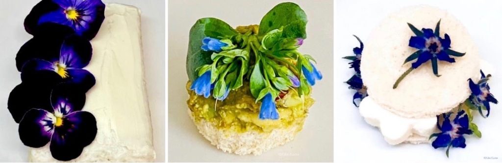 Afternoon Tea Sandwiches with Edible Violas, Oyster leaf and Borages