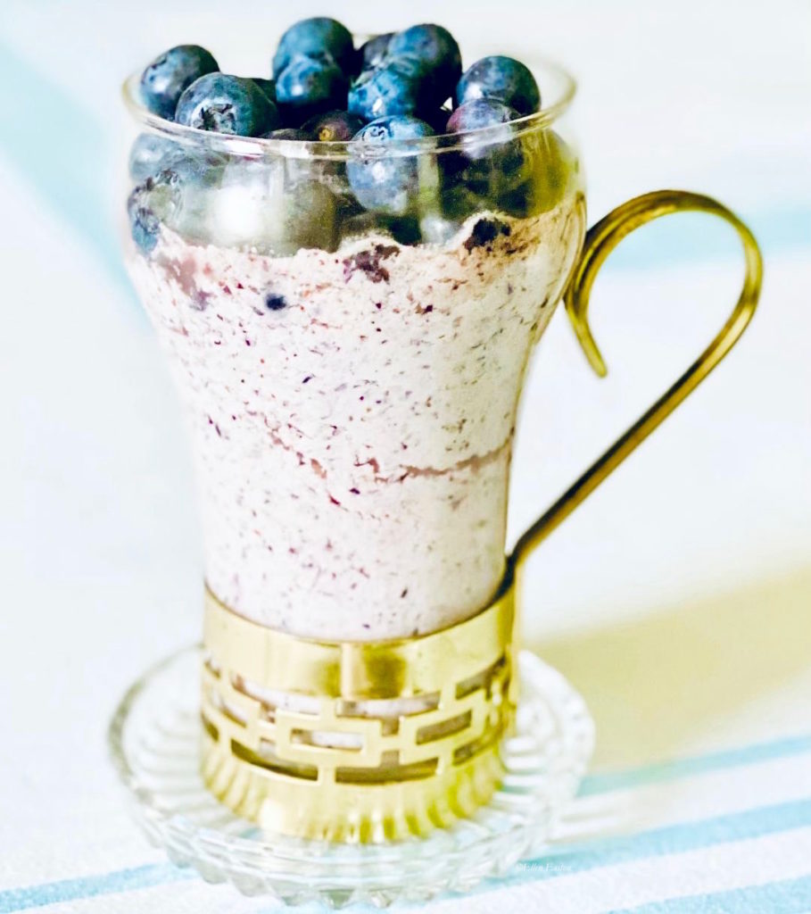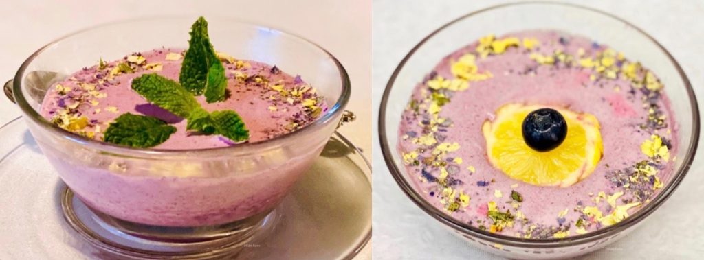 CHILLED BLUEBERRY SOUP or SHAKE with Crushed Edible Crystal Flowers