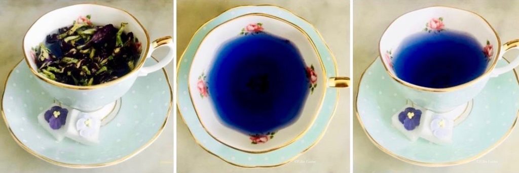 Butterfly Blue Pea Flower Infusion has no caffeine, filled with vitamins and antioxidants is refreshing served hot or iced. The longer it steeps the darker blue it will become. Add citrus and it will turn pink. Experiment to add to your recipes for cakes, cookies, puddings, icings and shakes to find your favorite shade of blue.