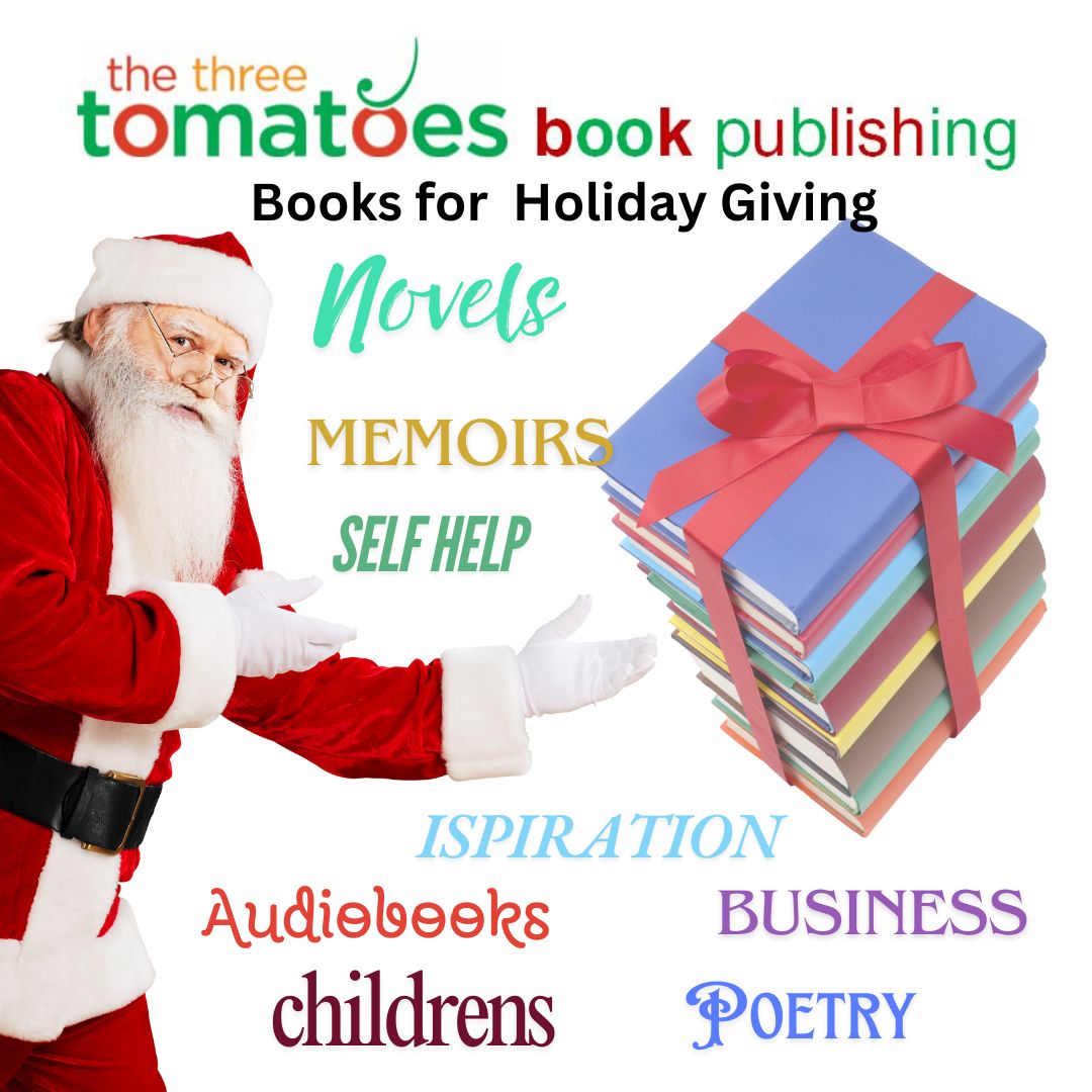 We love giving books as gifts….here’s a roundup of a few of the books we’ve published that are great gifts for the holidays and hostess gifts too. For more book suggestions visit The Three Tomatoes Publishing.