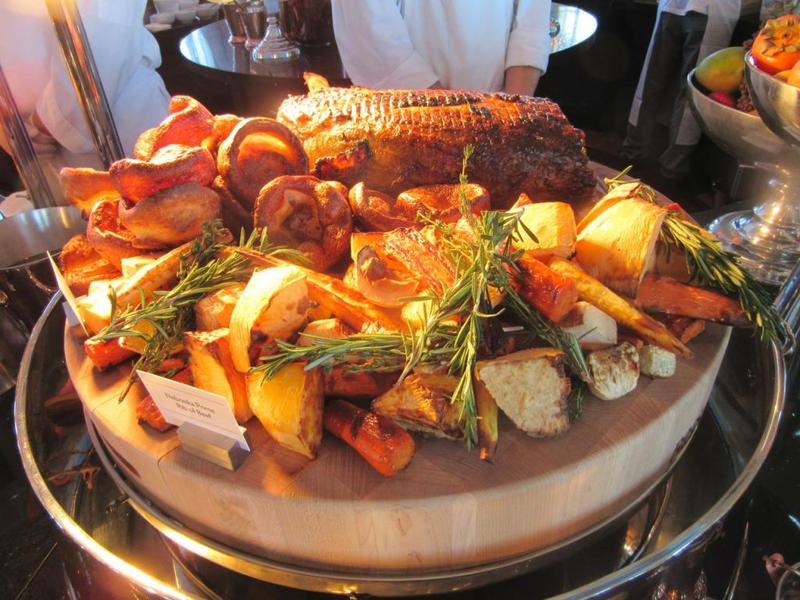 Although the Rainbow Lounge — finished or not — will welcome bar business weeknights, this new Rainbow room will be open only for dinner on Monday — with live music and dancing — and for this Sunday brunch. That leaves the landmarked circle, with its revolving dance floor, free for private events. And Katz can bring them. The beef is wonderfully rare and meaty. And yes, it’s time for lunch now. The prime rib platter in the roasts corner of the buffet is certainly tempting though alas, the Yorkshire pudding is as chewy as a pig’s ear. Anyway, I’m still panning a sublime breakfast.