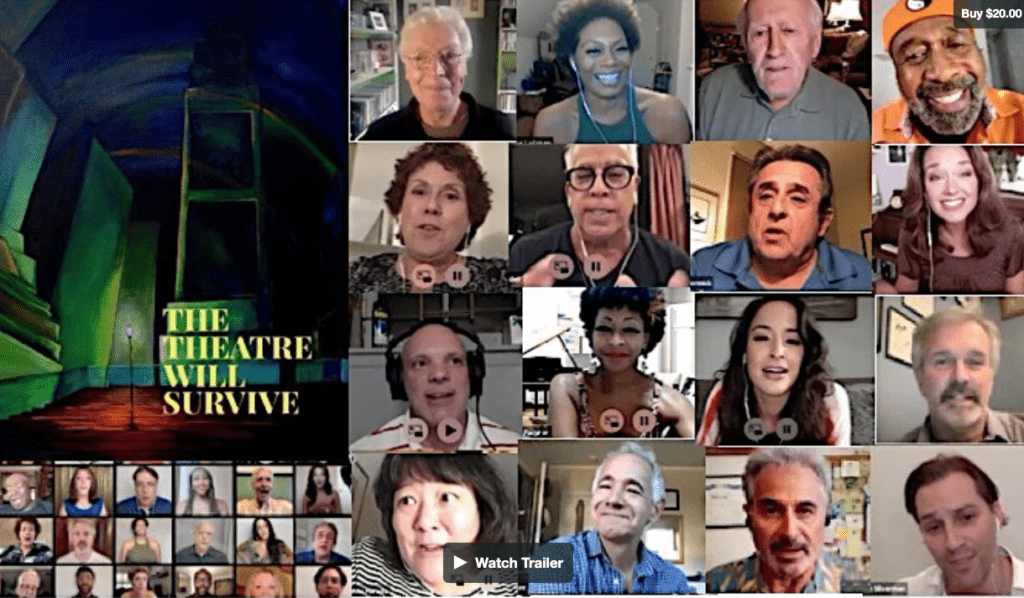If you were unable to join the reveal of the much talked about The Theatre Will Survive when it was originally broadcast by TheaterPizzazz.com (via MetropolitanZoom) on August 31,2020 benefitting The Actors Fund, now’s your chance to not only see the entire program, including the music video with 29 Broadway performers, but to be part of the solution by donating $20 to The Actors Fund. You’ll also have the pleasure of seeing the LIVE Q & A with many of the performers and special guests who attended, hosted by Sandi Durell and Michael Colby.