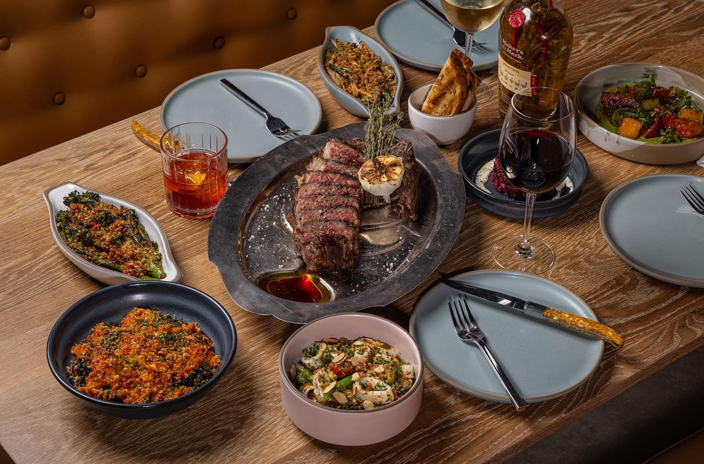 Charcoal Photo of Steak and Whole Meal