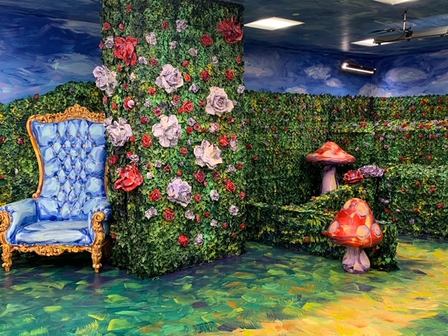 You can participate in special events for both kids (The Mad Hatter’s Tea Time) and those over 21 (Wonderland After Dark). On the entrance floor you can lounge at a bar and snack area. Be sure to peek into Wonderland Dreams beautiful event space, of course, designed in the whimsical Alexa Meade style.