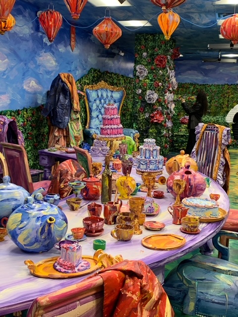 Adding to the fantastical space, one has the ability to paint and leave behind a paper rose, touch and feel all that is exhibited and attend a more formal painting class.
