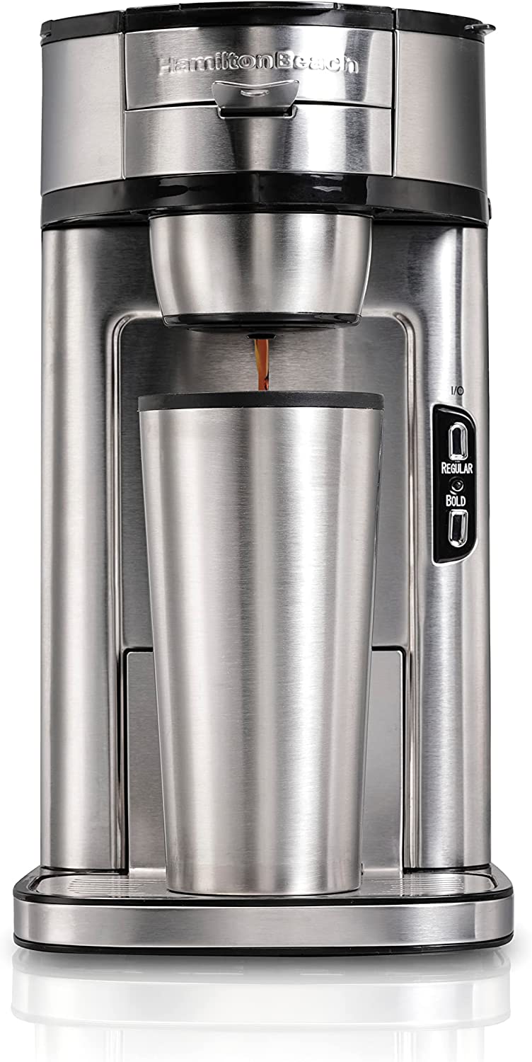 This is so simple…no need to measure the coffee and simply place a coffee mug or travel cup and you’re ready to go. Amazon $35.00