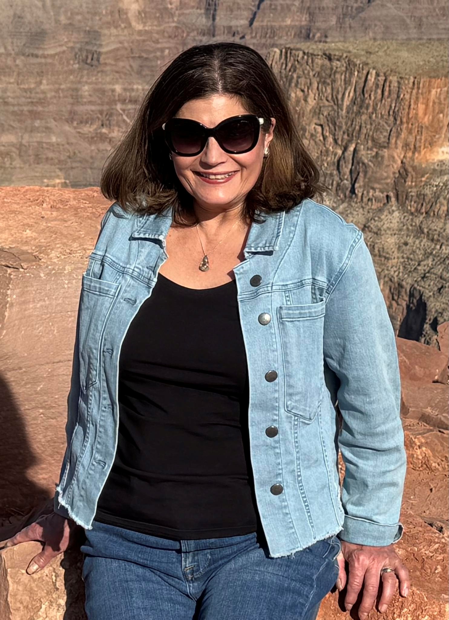 - Wear a sleeveless top under a lightweight fitted jacket like the denim one I’m wearing at the Grand Canyon below.