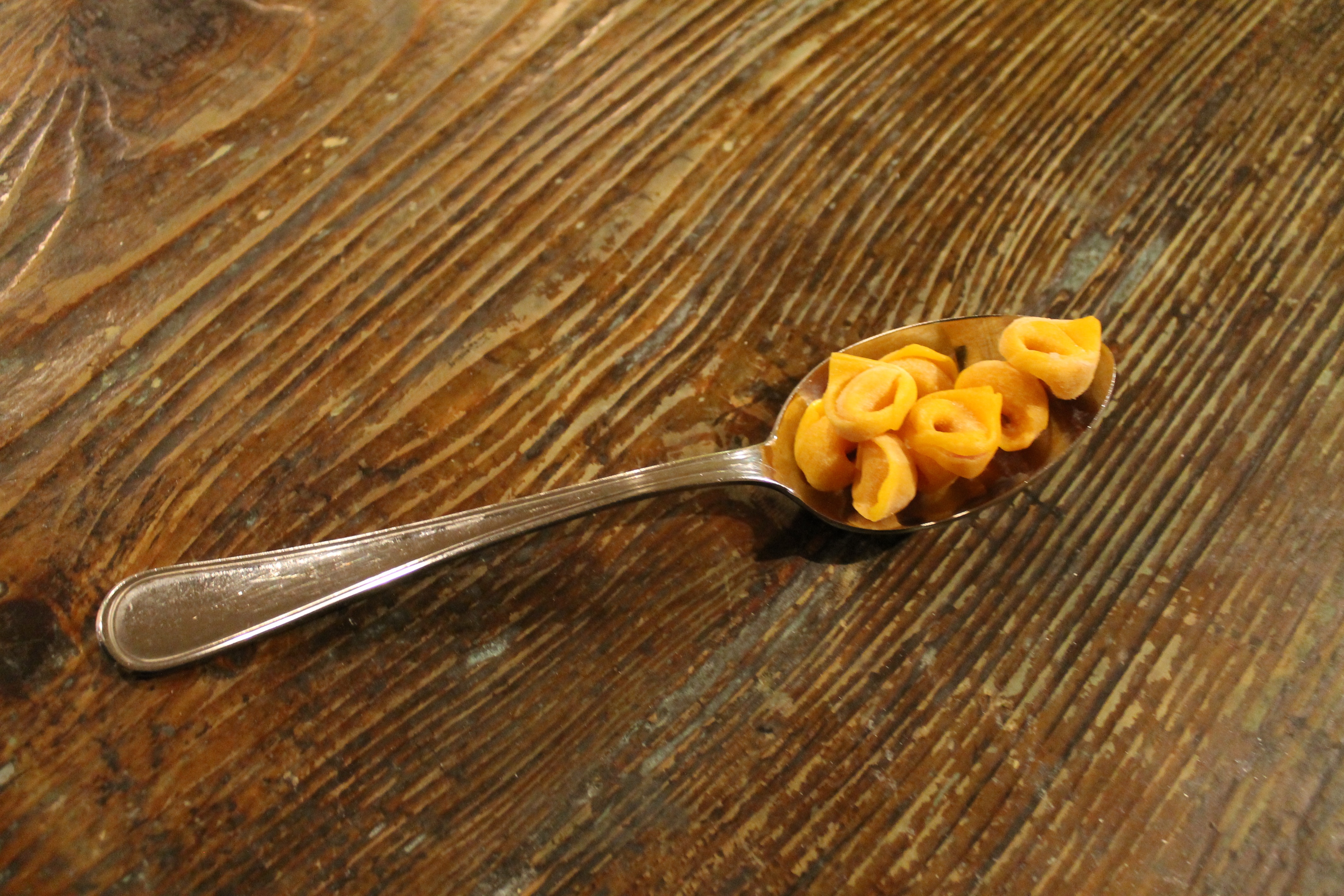 Bologna is nicknamed La Grassa, “the Fat One,” because of all its amazingly rich delights like impossibly tiny tortellini, belly-button shaped filled pasta, which tradition dictates should be small enough so that at least 7 fit in a tablespoon.