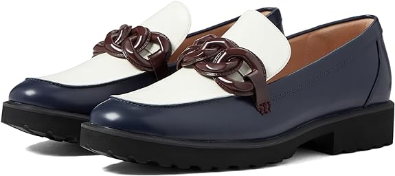 We love these two-toned navy blazer/ivory/cordovan leather loafers. Amazon $180.00