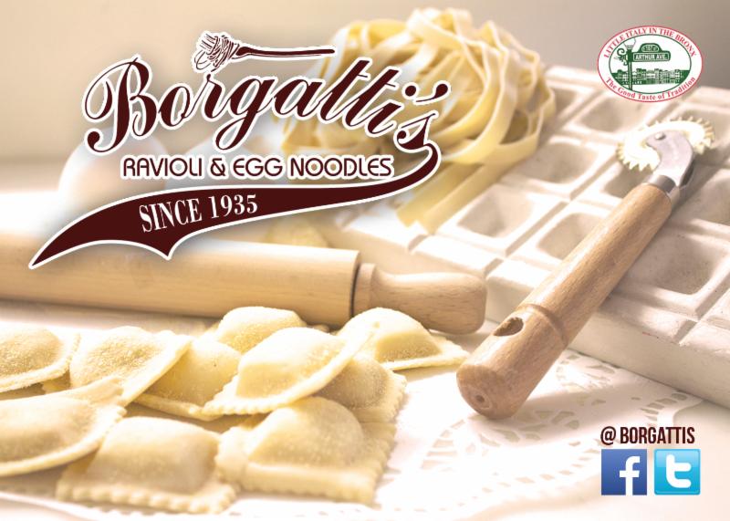BORGATTI’S RAVIOLI & EGG NOODLES.Since 1935, when Lindo and Maria Borgatti founded Borgatti’s Ravioli & Egg Noodles, to the next generations of owners, Mario and now his son, Chris, this superb family-run business has built up a reputation to be envied. And with good reason: everything about Borgatti’s is under the personal supervision of the Borgatti Family making it a can’t-miss stop on a visit to Bronx Little Italy. Every variety of fresh ravioli, noodles and pasta are expertly prepared using the finest quality flours, cheeses, meats, spinach, mushrooms, carrots, tomatoes, pesto, and other mouthwatering ingredients. You’ve got to see and taste for yourself why customers say it’s “Well Worth The Trip.” Go to www.Borgattis.com for more information. Borgatti’s Ravioli & Egg Noodles, 632 E. 187th Street, Bronx, NY 10458 (718) 367-3799