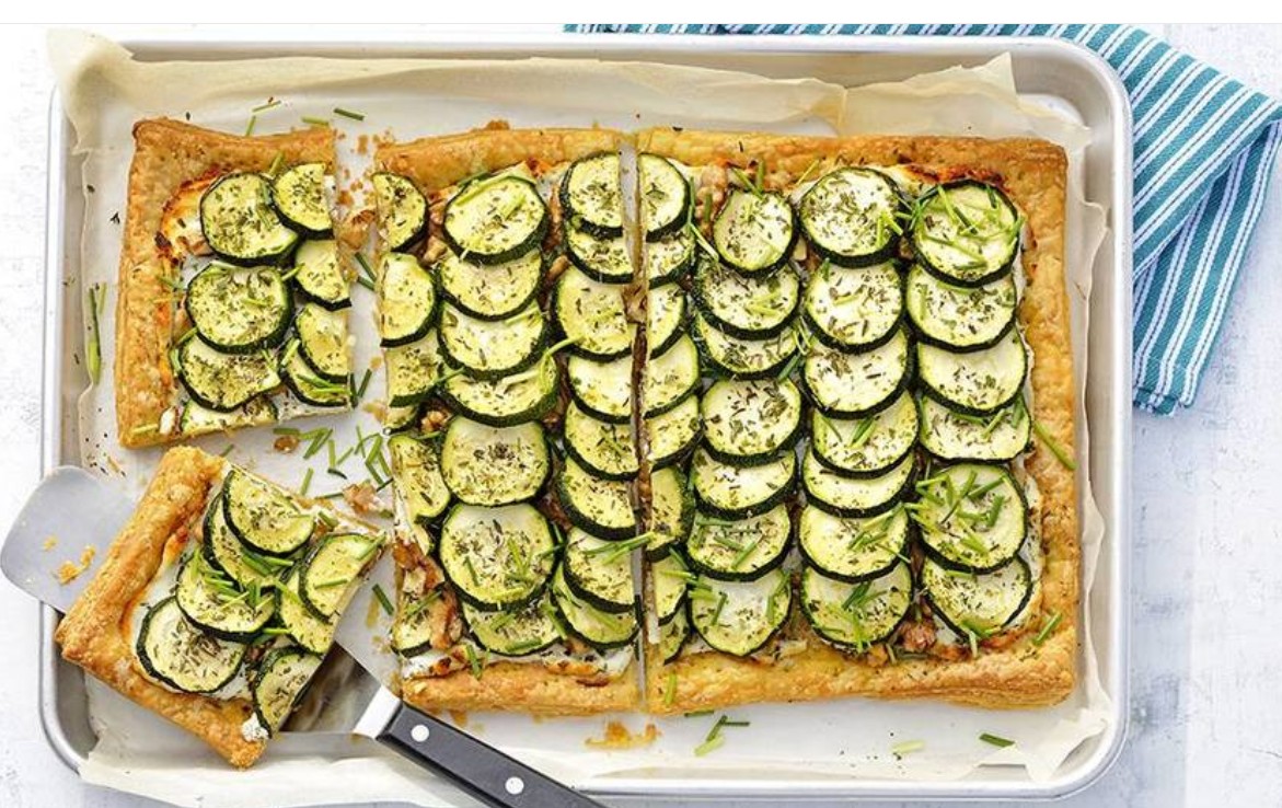 - Arrange zucchini in a horizontal pattern over nuts. Top with remaining ½ teaspoon Herbes de Provence. Bake until pastry is golden brown and zucchini is fully cooked, about 25 to 30 minutes. Garnish with chives to serve.