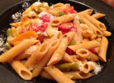 Microwave green beans for 1.5 minutes, until tender. Heat the olive oil and the garlic in a sauté pan. Turn the heat to high and add the cherry tomatoes and green beans. Sautee. As the tomatoes cook, add some water (I add a ¼ cup Low-Sodium V8). Once the tomato skins are collapsed, add the basil and the pasta. When hot, sprinkle with salt and pepper, stir in mozzarella. Sprinkle with Parmesan and serve. My favorite wine pairing: 2012 Kosovec Skrlet, a light-bodied Croatian white that will nicely accent the refreshing nature of the dish.