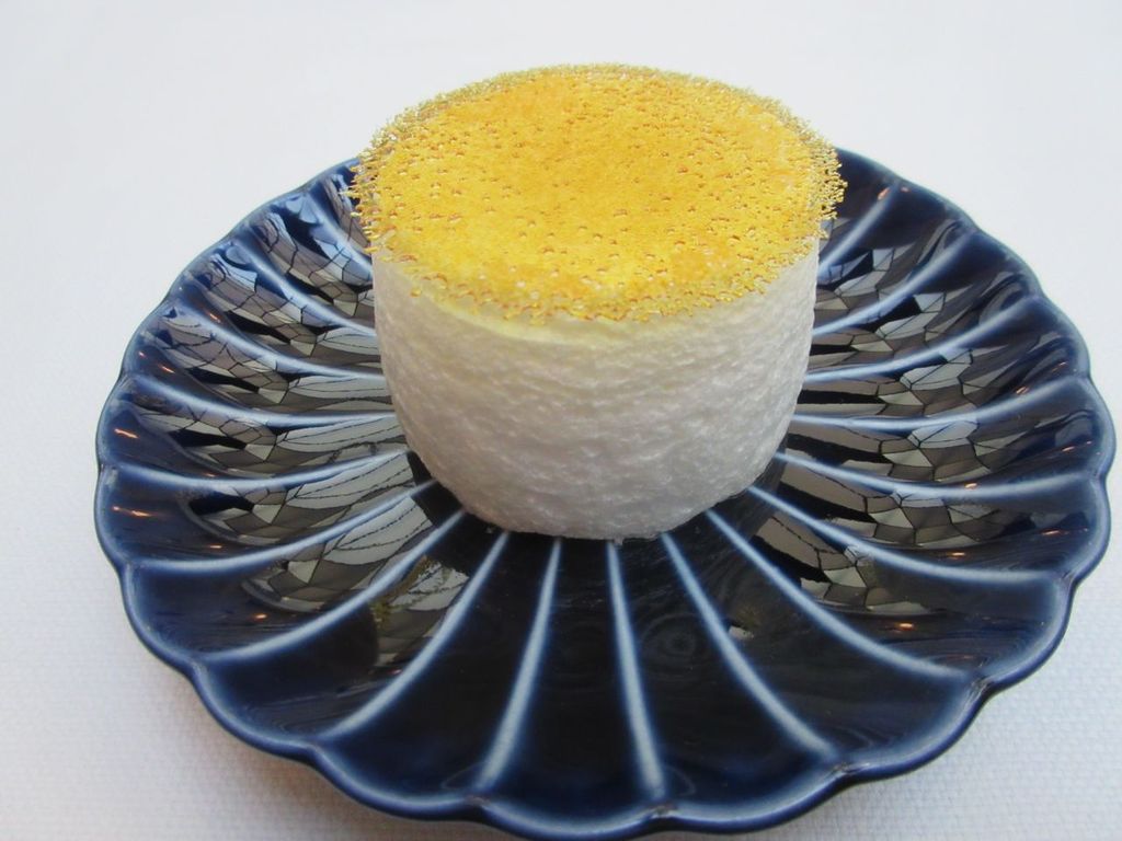 After a rondelle of floating island, its cascade of crème anglaise released by the spoon, a parade of desserts arrives – I did confess that my wish to be anonymous has not been honored, didn’t I? There are fraises des bois, raspberry snow, flouve ice cream (a flower used in perfume), an oval of Perrier sorbet, and an adagio in almond milk.