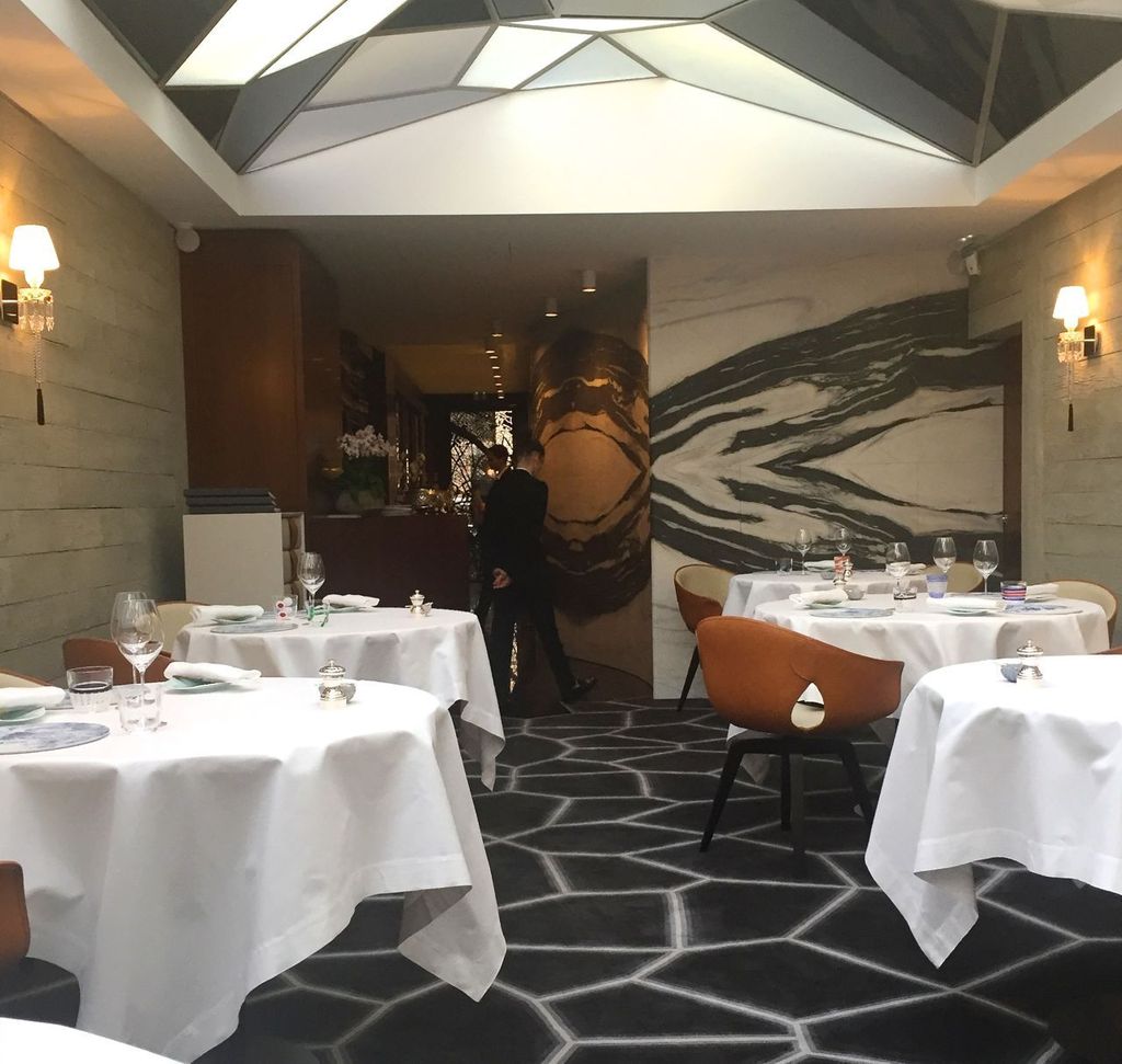 Certainly I am totally opposed to a fancy tasting lunch on my last day in town. Dinner, perhaps. But here we are, the three of us at Jean-François Piège’s crankily uncommunicative and impossible to book Le Grand Restaurant. Fancy, stuffy, popinjay perky, precious. There is a 190 Euro “Debut of Autonne” tasting and a 245 Euro “Signature” event, too. Ours will be 84 Euros (the bargain choice). I am sure I will despise it.
