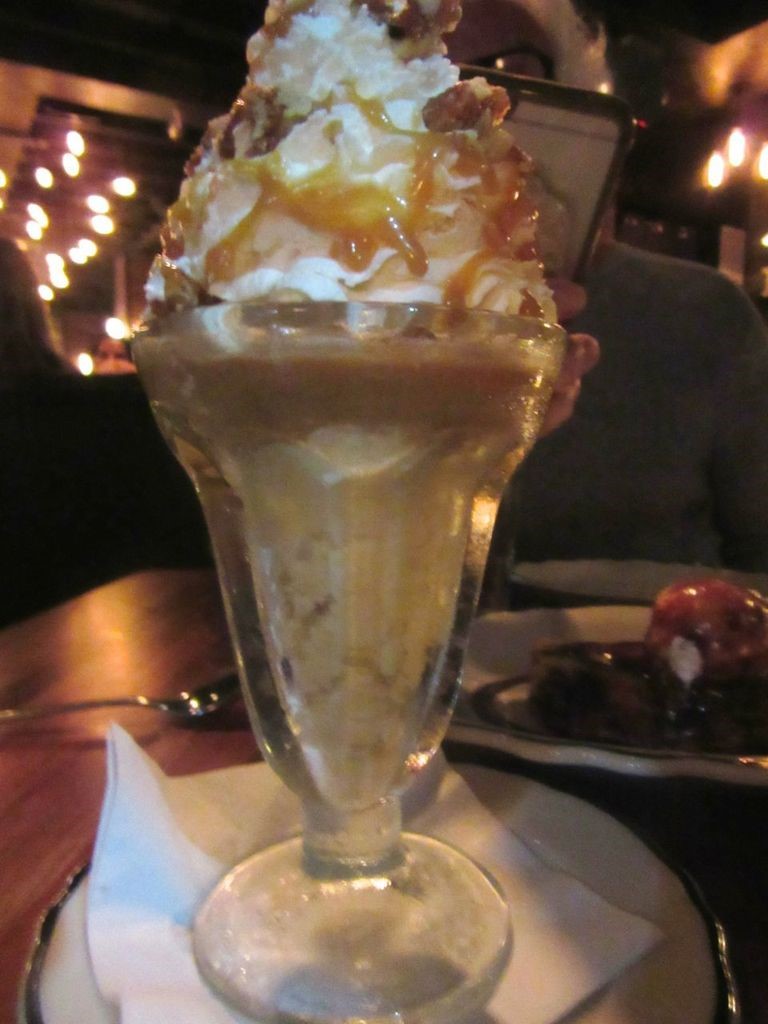 I can’t say there’s $12 worth of joy in the hot fudge sundae we’re spooning into, even after I shovel away a mountain of whipped cream to find a walnut. There can never be too much chocolate. Still, given the sprawling room and the sprawling menu, I sympathize. The house needs time to gel. The check comes tucked into an old book. Always leave them smiling, I think. I definitely need to taste more.