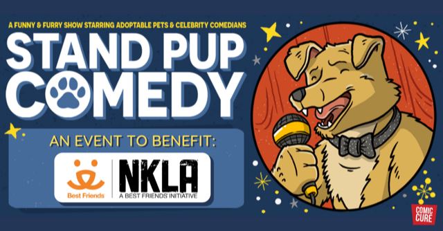 Stand Pup Comedy is a fantastic way for local animal shelters to raise funds. Their online furry events star funny humans and adorable-adoptable pets. Our local Best Friends Animal Society is the host of this event with a portion of the proceeds will going directly to them, Tomatoes. Woo-Hoo!