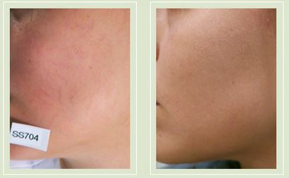 Facial veins are often referred to as small spider veins, broken blood vessels, broken capillaries, rosacea veins or facial telangectasia. These unsightly veins can be successfully treatment with either sclerotherapy or laser facial therapy. Each case is individually evaluated and then either sclerotherapy or laser facial therapy can be performed. Large blue veins respond very well to sclerotherapy. Advances in sclerotherapy such as better magnification, polarizing lenses and tinier needles allows the injection of even the smaller facial veins with very little trauma to the surrounding tissues. Any leftover small red veins will be treated with lasers.