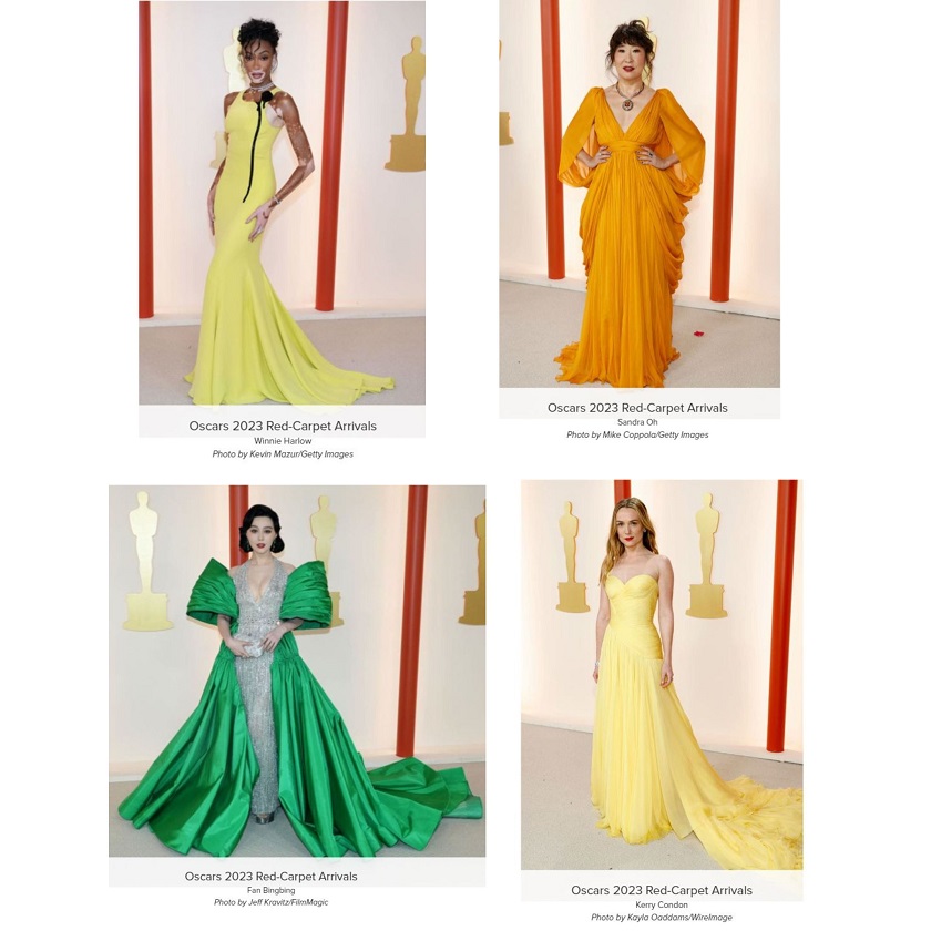 Felicia Arlin and Scarlett loved Monica Barbaro’s gown. Scarlett called it, “elegant and playful and unexpected color combination. “