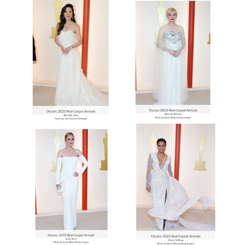 We all agree with Scarlett Debase comments that “Jamie Lee Curtis (top left in case you didn’t know – photo by Getty) is proof that a woman can look elegant without being emaciated. Her gown had very subtle details at the waist which gave her more of an hourglass looking shape and camouflaged her tummy. You know, the one that most of us Tomatoes have.” The head Tomato adds: “I love how Jaime Lee Curtis owns her age, with her beautiful grey hair and her own face that seems “filler free.”