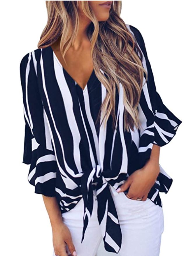 Sexy striped v neck tops, loose casual style. Amazon $23.00