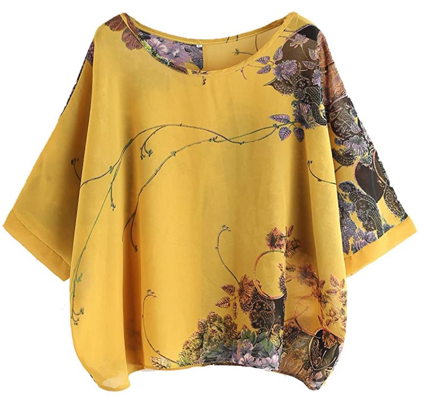 Loose flowing flower Print, Batwing Sleeve. Handwash only. Amazon $18.00