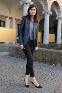 Unless you’re going to wear high heels, very skinny-legged pants with a shirt tucked in, your old leather jacket will not duplicate this outfit.