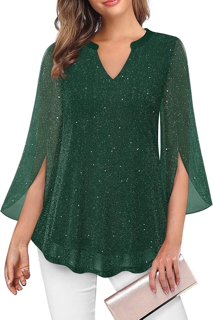 This festive, semi-sheer top features shimmering sequins and a flattering V-neckline. Designed with long sleeves and a relaxed fit, it’s perfect for holiday parties or cocktail events. The sparkly finish adds glamour while remaining comfortable and easy to style with skirts, trousers, or jeans. Amazon $28.99