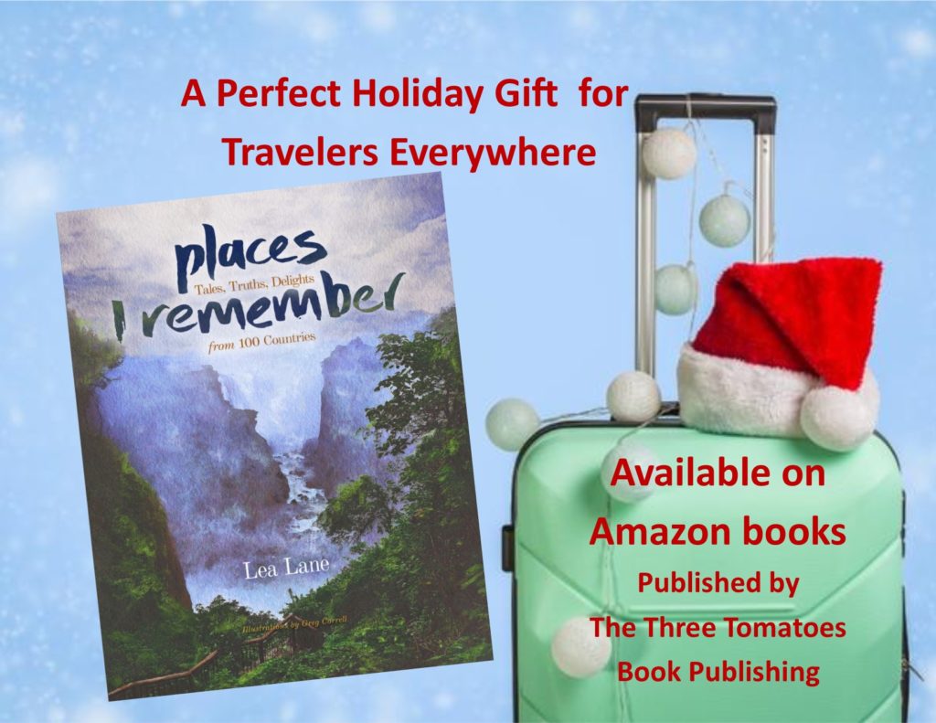 Places I Remember is a unique combination of travel memoir, travel almanac, personal journal and an illustrated album that also makes it a beautiful coffee table book. It’s organized in alpha order by country and goes back in forth in time over five decades. Lea Lane is a beautiful writer and an insightful traveler who was always willing to leave the most traveled path in search of adventures. She has a thirst for wanting to know the real country, not just the tourist spots. The reader will find many lessons along the way and you will relish the journey. Get the book.